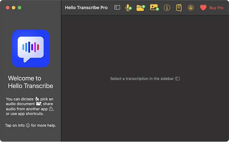 - Hello TranscribeをMac App Storeからインストールして、起動する。