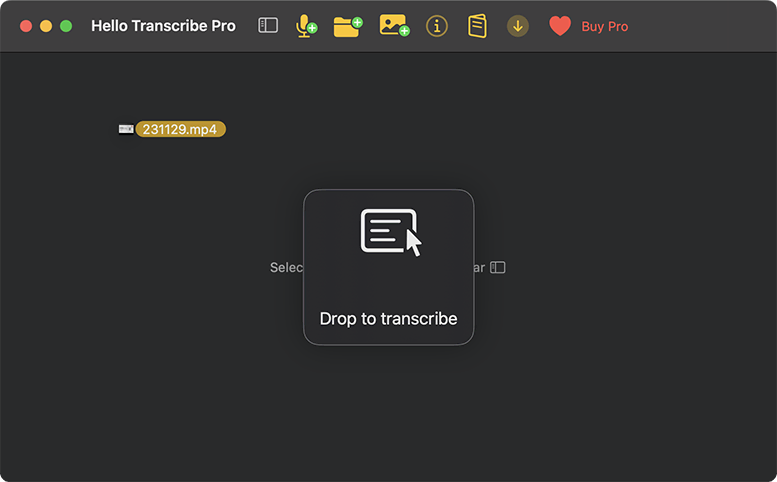 - オーディオまたはビデオファイルをドラッグ&ドロップするか、マイクをアクティブにして、処理をスタート。