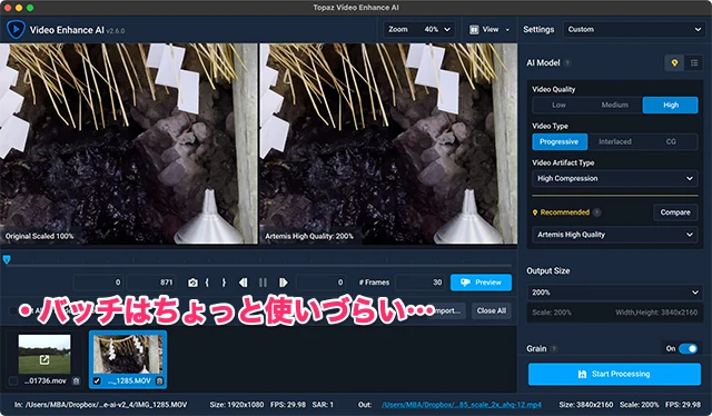 かなりしつこくVideo Enhance AIでバッチ処理してみた