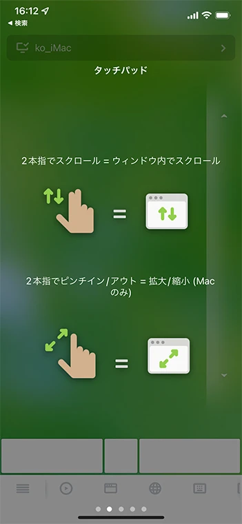 - iPhone上でタップしたりスクロールして、Macのマウスポインターの動作を確認する。