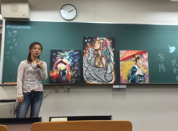 中国洛陽から福岡に来てアート活動をしているジャスミンさん。彼女も、どこかでライヴペインティングを見たことがあったような気もします。