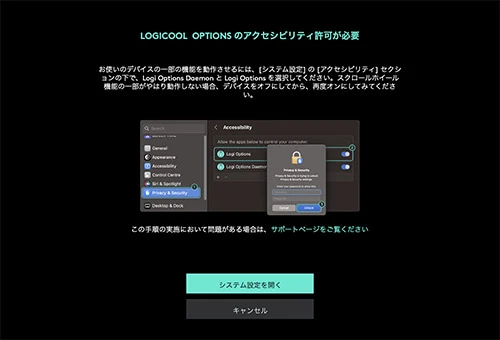 ロジクール製品のデバイスをカスタマイズできる、Logi Options+というユーティリティーや、MX Mechanical Mini for Macというユーティリティーもあるにはあります。しかし、Logi Options+は無駄にゴージャスな割に、なぜかF1/F2キーでディスプレイ輝度を調整はできません。ちなみに、このユーティリティーを使わなければ、キートップに刻印されている他の機能も使えません。