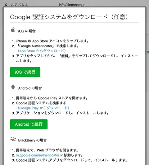 - iPhoneに、Google Authenticatorアプリをインストールし、Googleアカウントでログインする。