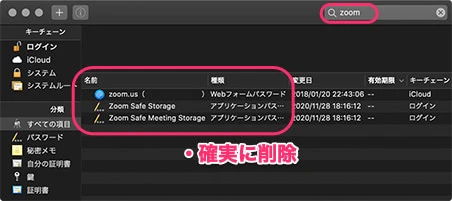 Macなら、キーチェーンアクセス内で見つかるファイルも忘れずに。