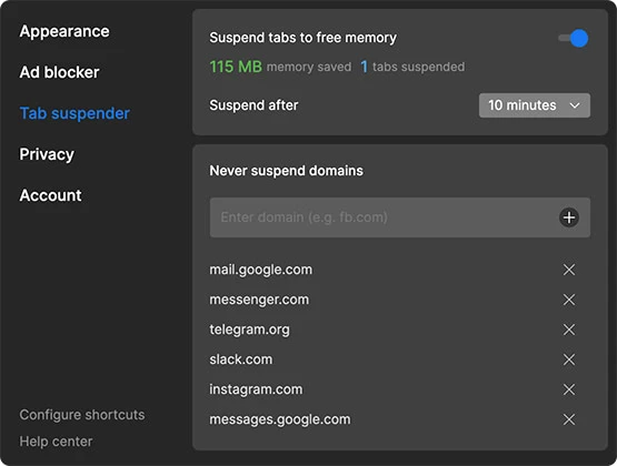 - AIでインテリジェントにメモリ消費を管理。ページは、タブの代わりに、「アプリ」として開くことでメモリを制御。