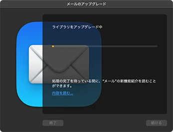 - メールのデータベースがアップグレードされるので、しばらく大人しく放置。