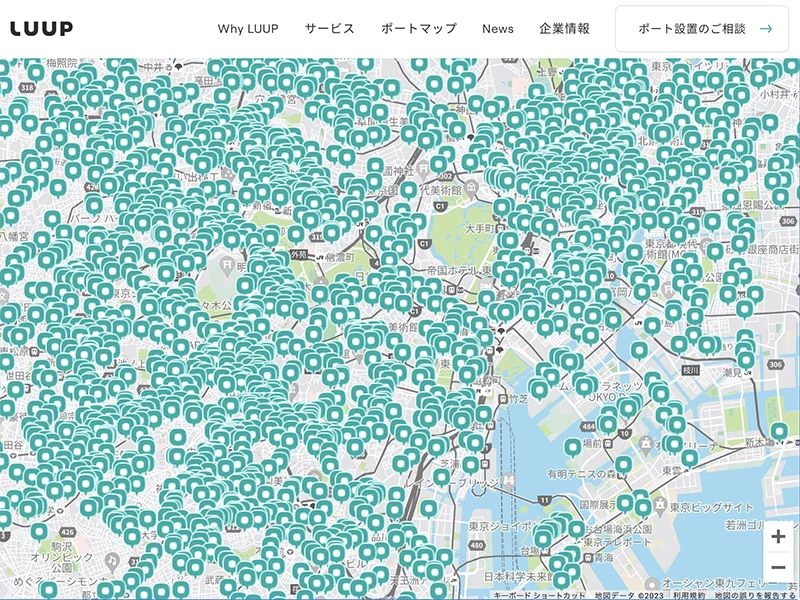 - LUUPは、ポートマップをデスクトップでも見られる(一部のシェアサイクルは、モバイルアプリからしか見られない)。
