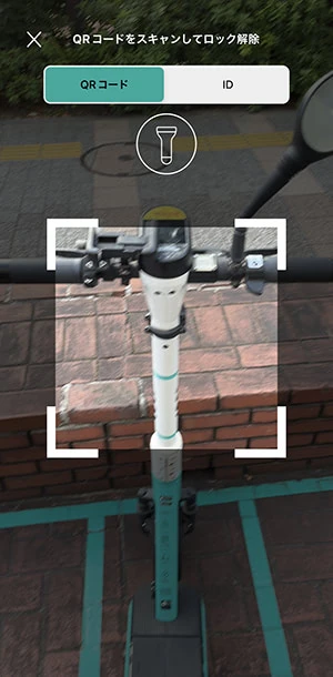 - ポートに行き、車体番号(ナンバー)を確認。乗りたい車体のハンドル部分にあるQRコードを、アプリで読み取ってロック解除する。