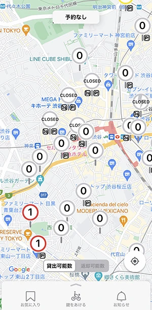 - 朝の通勤や通学時間帯には、郊外のポートはほぼ出払ってしまっているはずで、定期的な利用には向かない(同じエリアには、大体、他社のシェア電動サイクルも使われている)。