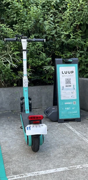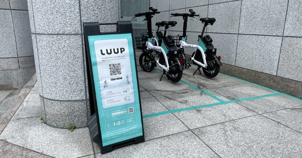 試してみたのはLUUP(ループ)。日本国内で一番普及しているシェア電動キックボードのサービスで、水色のブランドカラーをよく見掛けます。2023年10月時点で、横浜や宇都宮、名古屋、大阪、京都、神戸、広島などで展開しています。