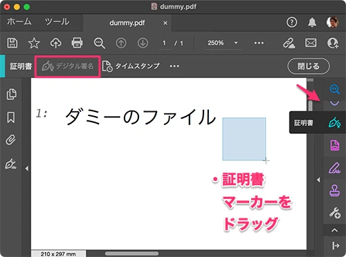 - Adobe Acrobat Pro DCで証明書ツールが使えない。署名したいPDFファイル上で、証明書ツールのマーカーをドラッグしても、証明書を選択するオーバーレイが開かない。