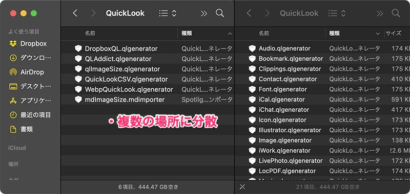 なお、Quick Lookプラグイン.qlgenerator は、システム内の3つの場所にインストールされる可能性があります。